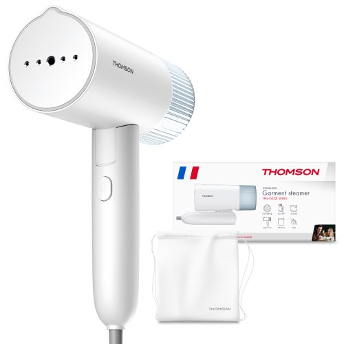 프랑스 톰슨 접이식 파워스팀 초고속예열 핸디형 2in1 원터치 스팀다리미 + 파우치 세트, 화이트